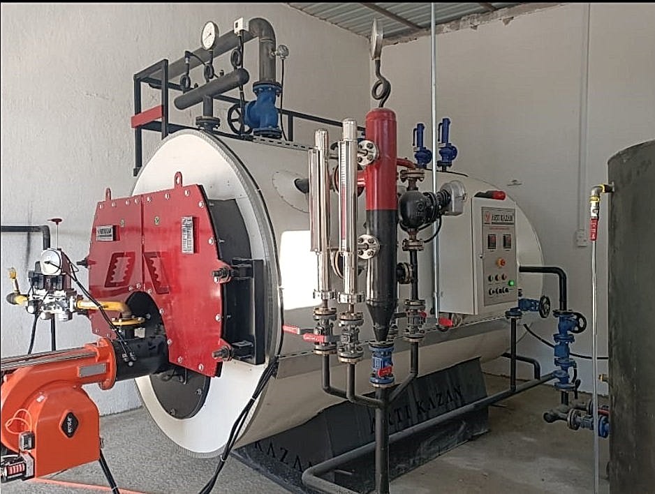 Gaz Yakıtlı Buhar Kazanı, basınçlı kabın ısı ve basınca maruz bırakılarak içindeki suyun kontrollü bir şekilde sıvı fazdan gaz fazına geçme işlemin yapıldığı makinalardır. Suya ısı enerjisi uygulayarak buhar oluşturmak için kullanılan bir cihazdır. Buhar kazanları suyun ısıtılarak buharlaşmasını sağlayan sistemlerdir. Buhar kazanları yakıt tipleri, çalışma basınçlarına göre dizayn edilmektedir. Kullandığımız her şeye şekil veren ve işlemede kullanılan bir basınçlı kaptan oluşan makine türüdür. Dünya genelinde skoç tip olarak adlandırılan kazanlar yüksek işletme verimi ve uzun kullanım ömrü ile tercih sebebi olmaktadır. üç geçişli yanma sistemi sayesinde %91 ile %95 arasında yüksek yanma verimi elde edilmektedir. Üçüncü geçiş borularında bulunan pencere tipi türbülatörler (alev kırıcı) sayesinde yanma verimi artarken yakıt tüketimi azalmaktadır. Konya'da hayata geçirmiş olduğumuz 1.500.000 Kg/H kapasiteli Gaz Yakıtlı Buhar Projesini teslim ettik.